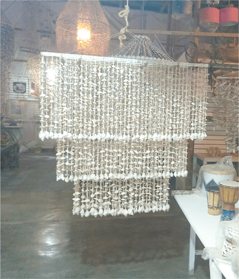 Producto artesanal realizado con conchas y caracoles del mar, cortina de tamaño 1.5MT